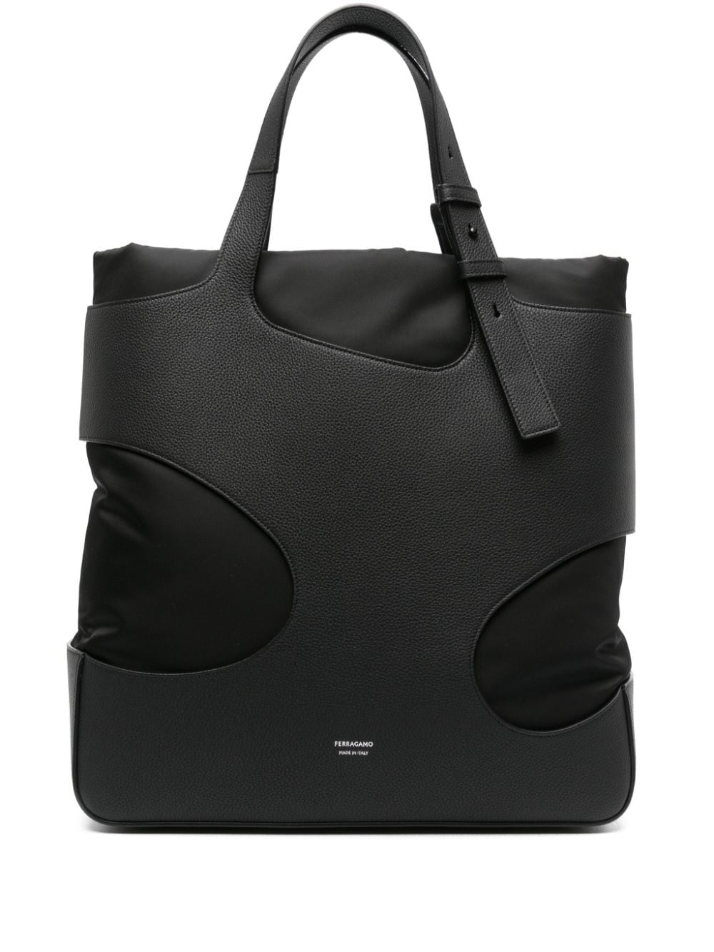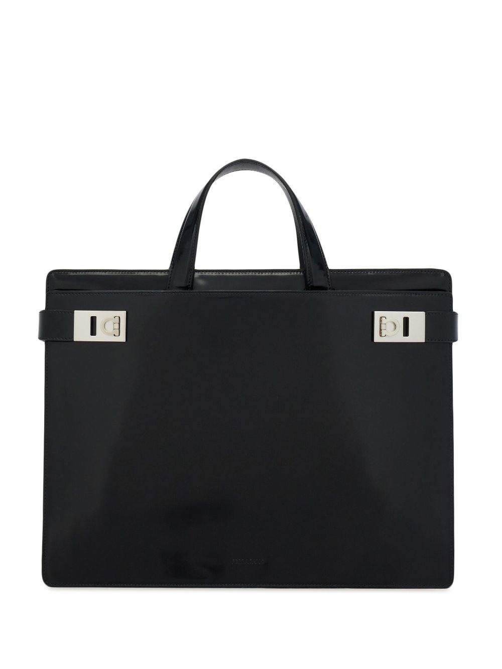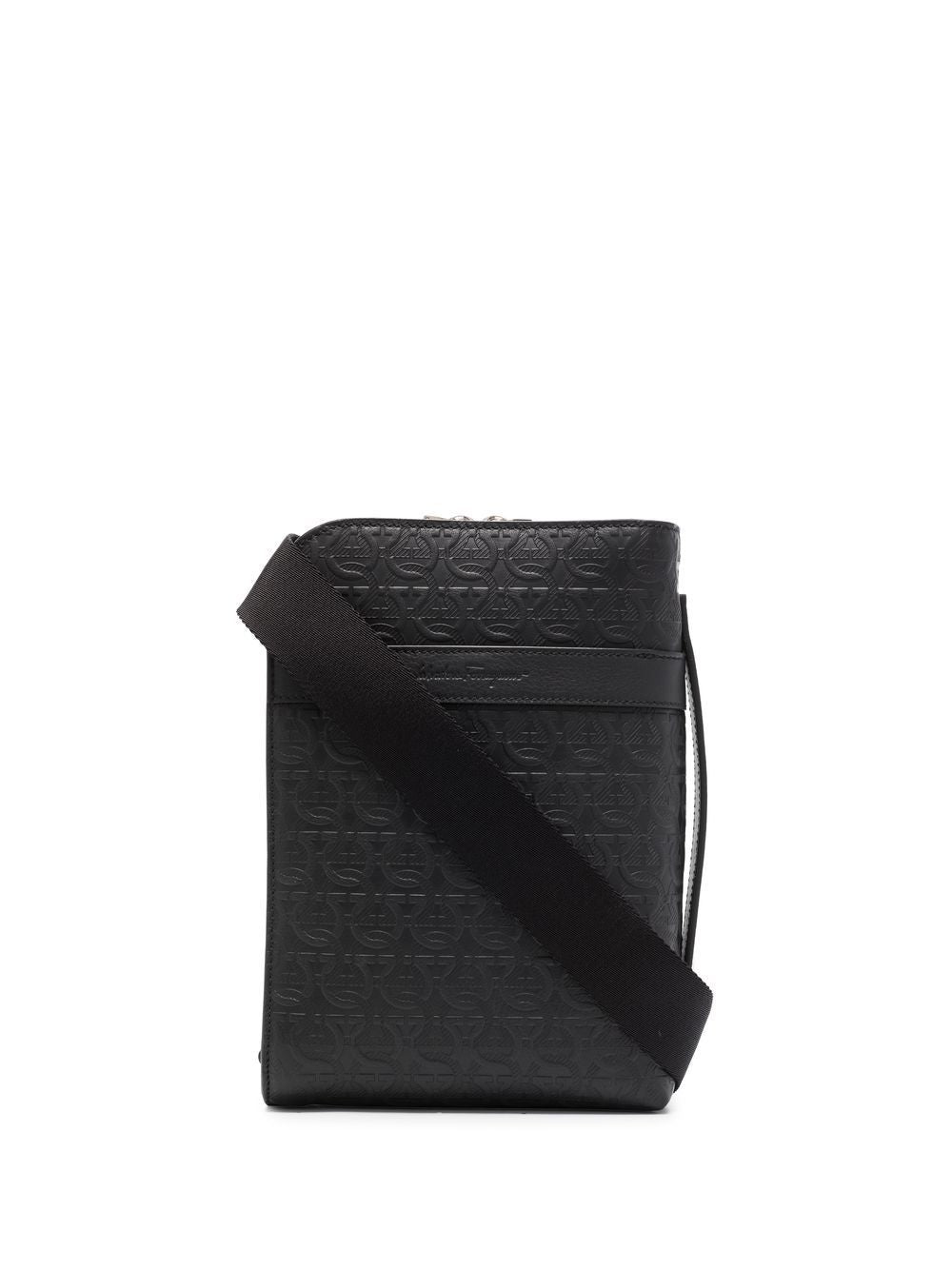 - What do you really need to take to work other than your phone, cards and those invoices you really must sort? Ferragamo encourage you to ditch all but the essentials with this leather pouch. Less is more. Featuring a top zip closure, a front zip compartment, an embossed logo and an interlocking Gancini pattern.