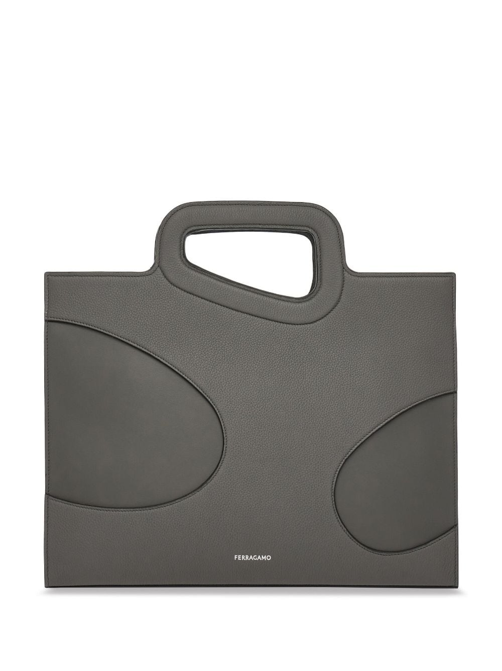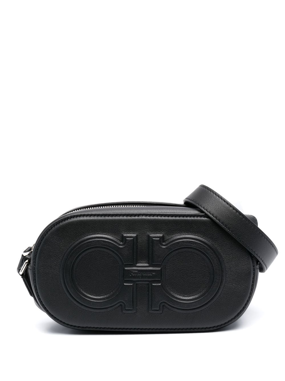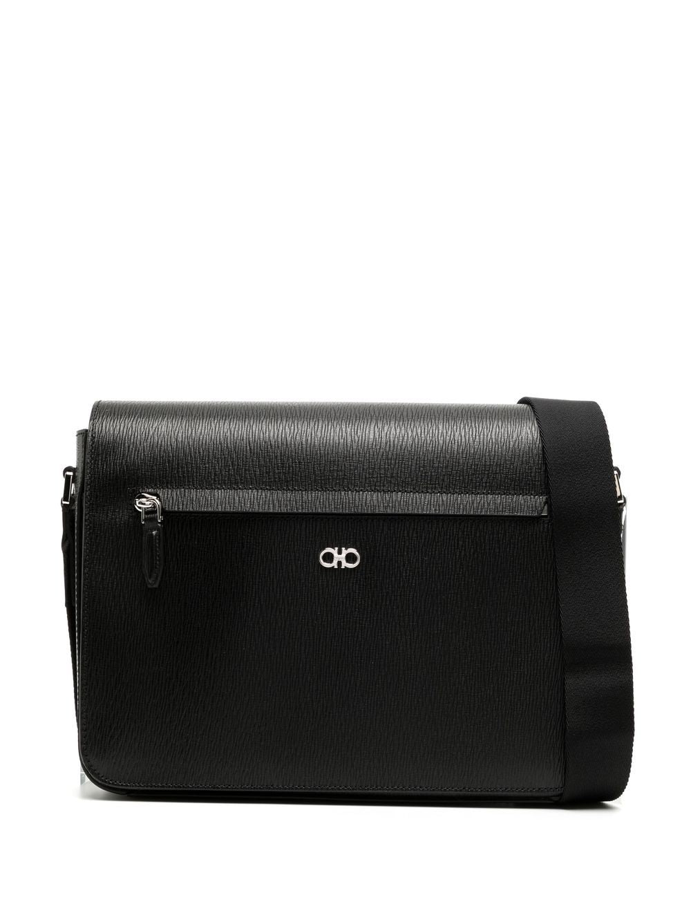 - textured shoulder bag from Ferragamo featuring off-white, calf leather, textured finish, silver-tone hardware, adjustable shoulder strap, top zip fastening, main compartment, internal zip-fastening pocket and front zip-fastening compartment.