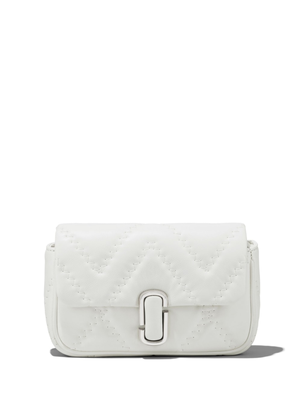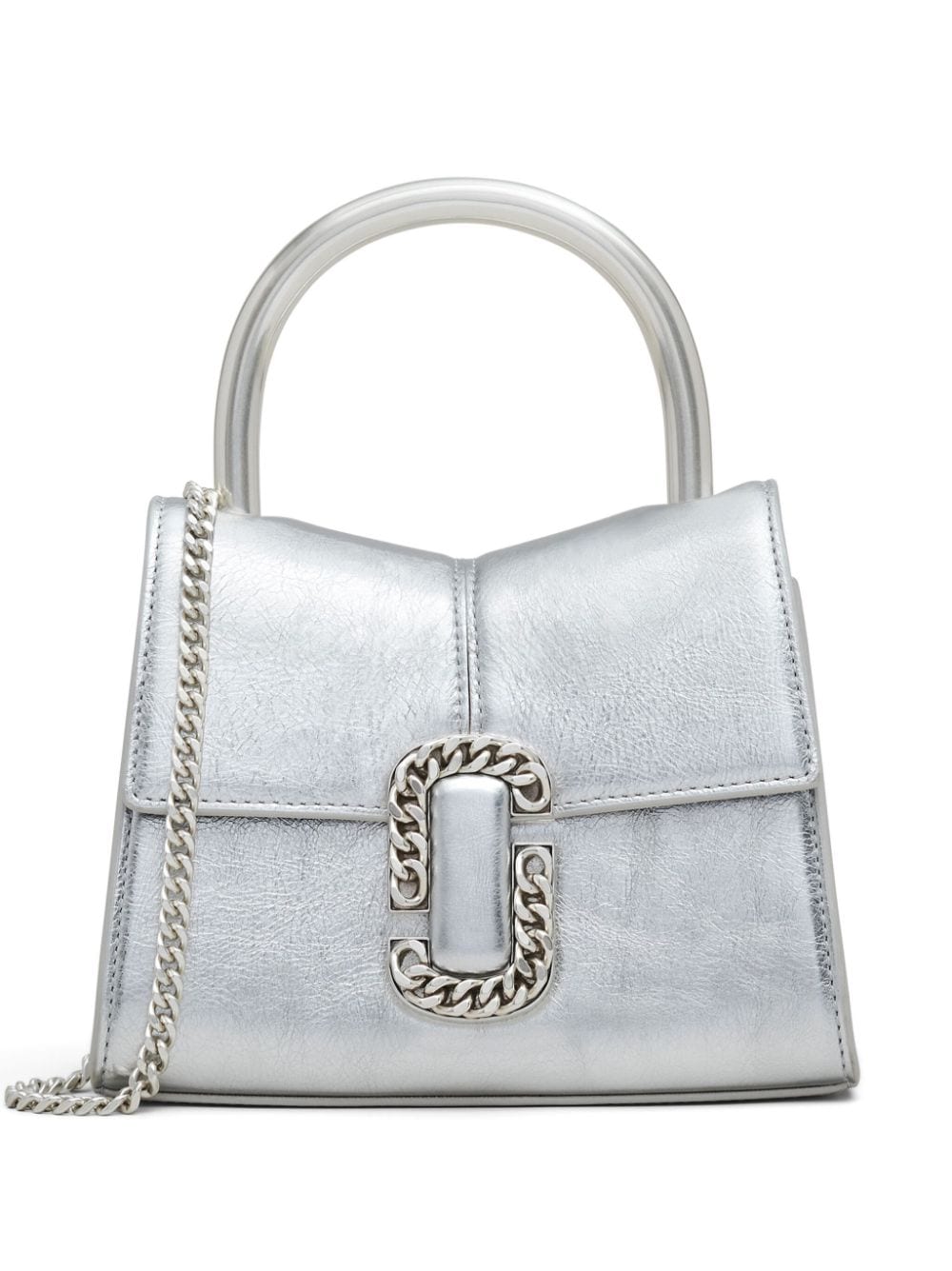 - The J Marc Mini Shoulder Bag from Marc Jacobs featuring slate grey, leather, matelassé effect, silver-tone logo plaque, two detachable leather and chain-link shoulder straps, foldover top with magnetic fastening, silver-tone hardware, main compartment, internal zip-fastening pocket and internal card slots.