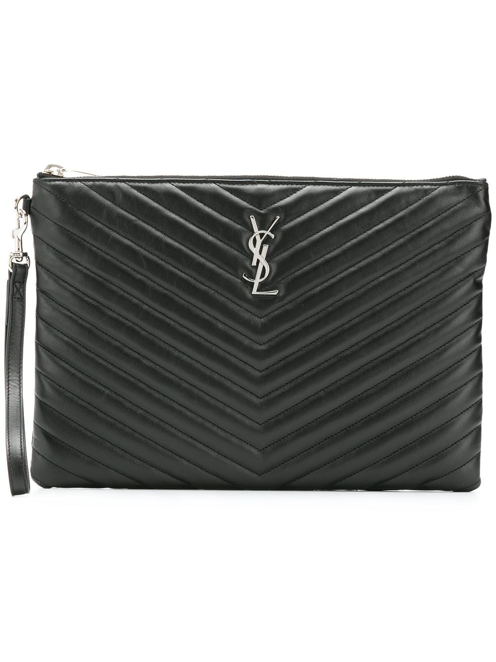 - Rive Gauche bucket bag from SAINT LAURENT featuring silver-tone hardware, logo print to the front, main compartment, removable pouch, adjustable shoulder strap, white/black and cotton.