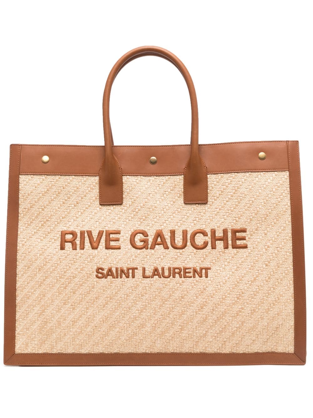 Saint Laurent Rive Gauche embroidered raffia tote bag