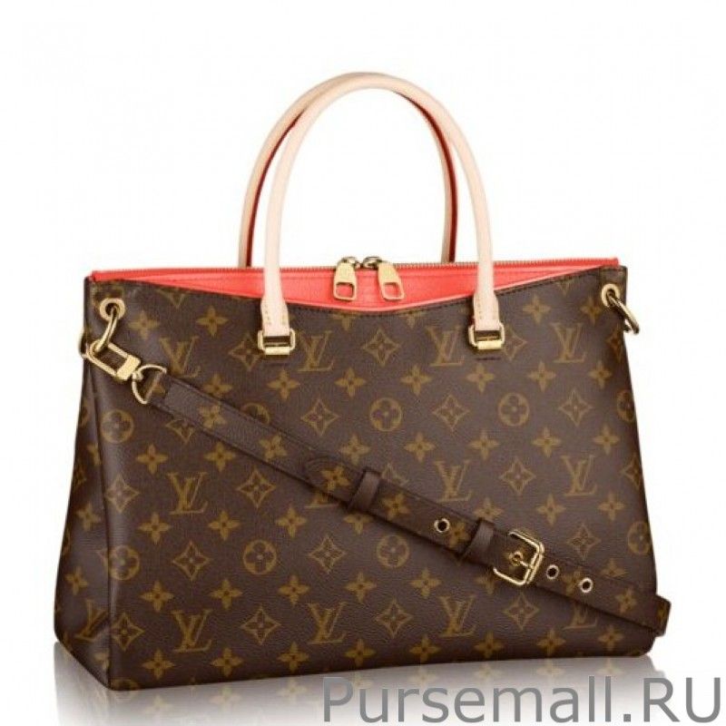 Monogram coated canvas and grained calf leatherSmooth calfleather trimMicrofiber liningGoldcolor hardware2 chains straps with smooth calf leather shoulder pads3 separate compartments: a central compartment with zipped closure and 2 side compartments with magnet closuresDouble smartphone pocket4 base feetSmooth calfleather name tag4 eyelets with leather framing and DringSize: 14.6″ x 10.2″ x 5.9″