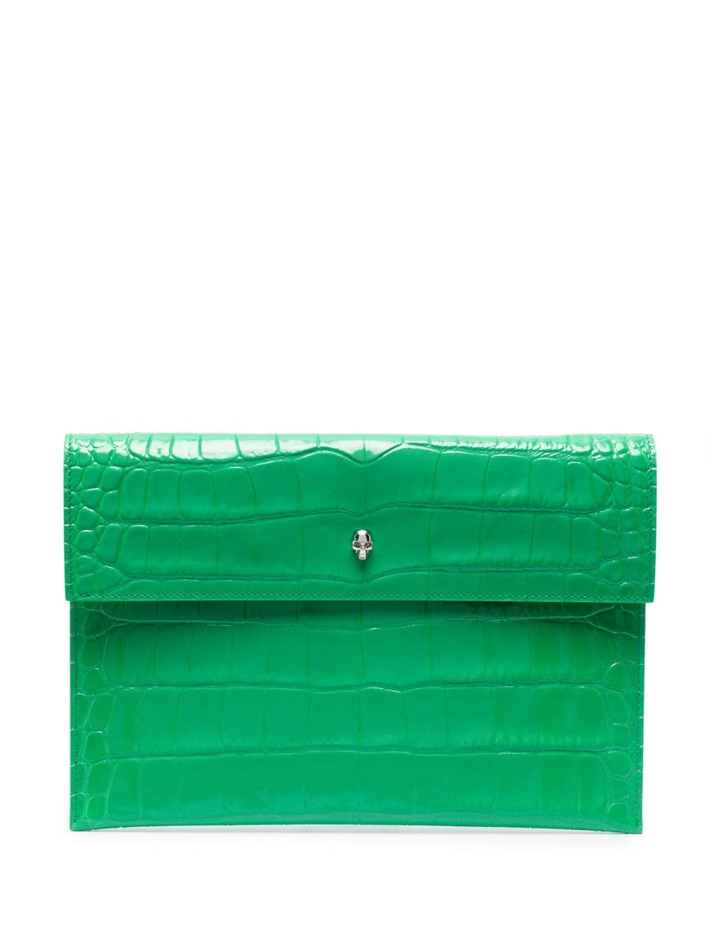 Alexander McQueen crocodile-embossed envelope clutch bag