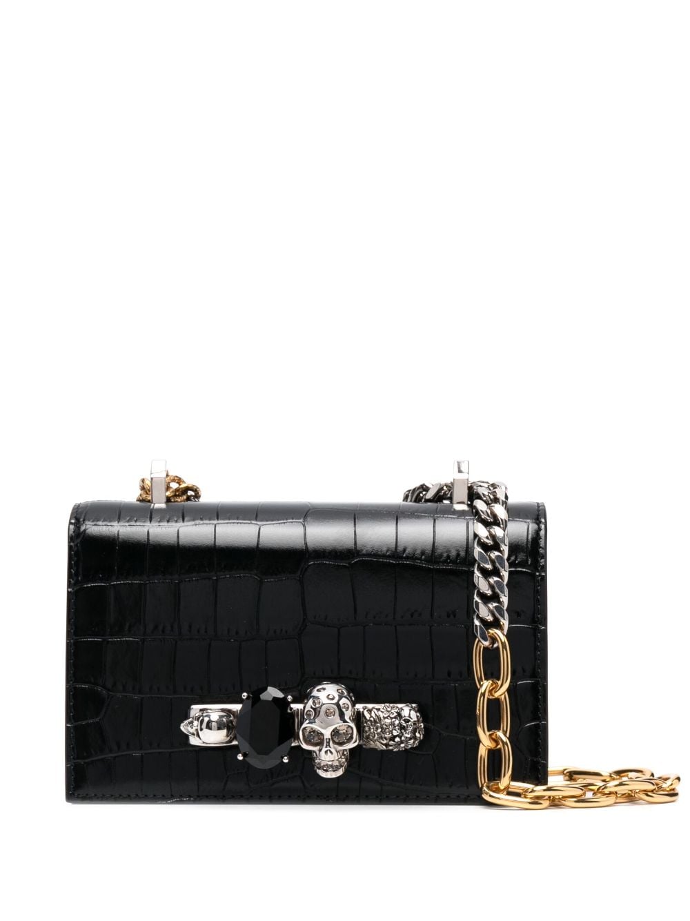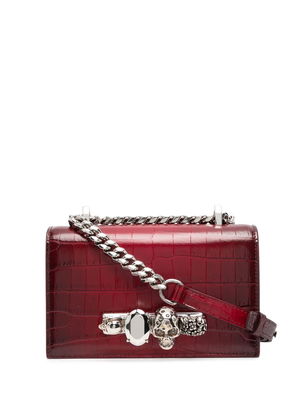 Alexander McQueen skull-embroidered crocodile-effect crossbody bag