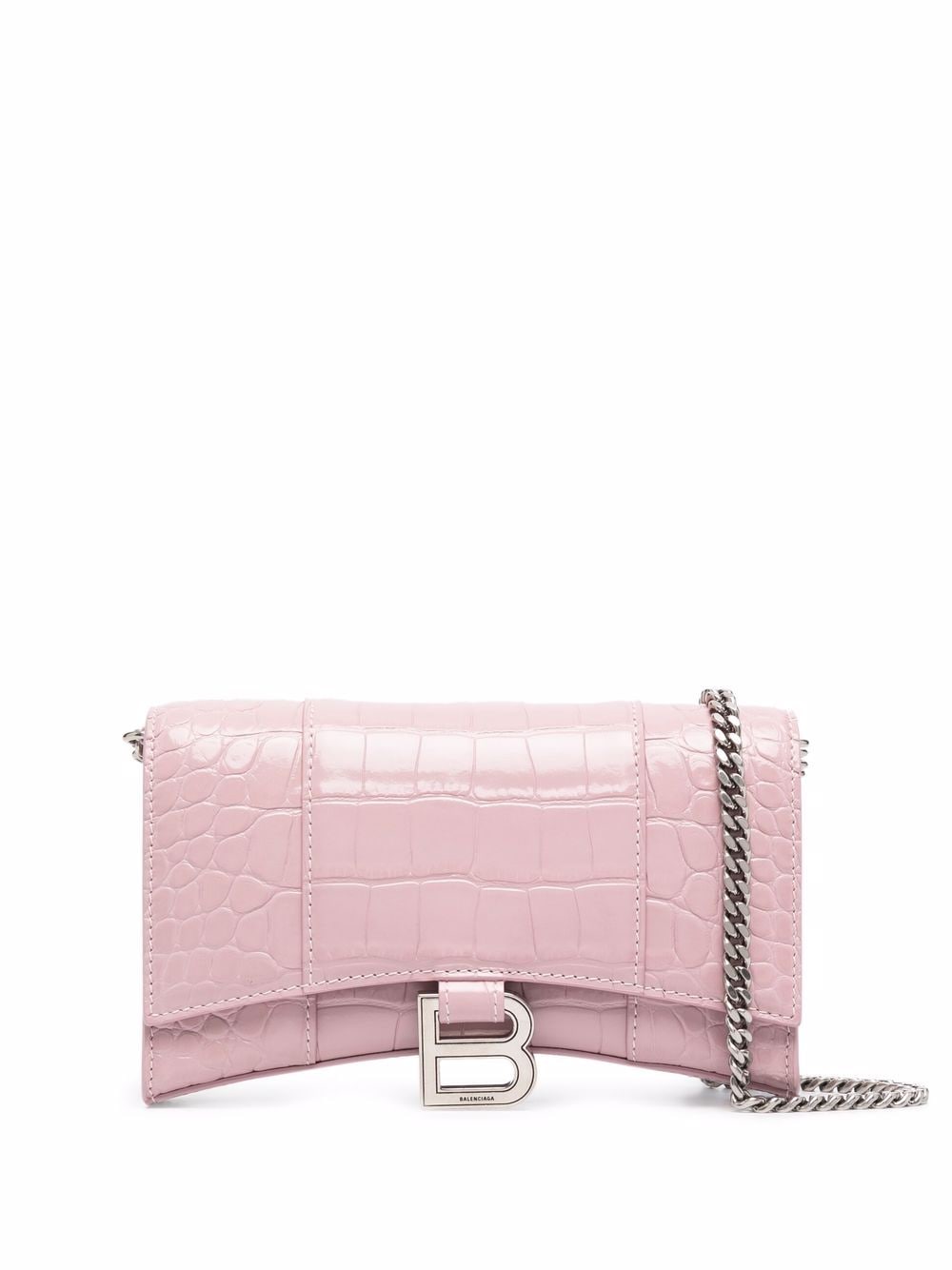 Ba*len*cia*ga hourglass crocodile-embossed chain wallet