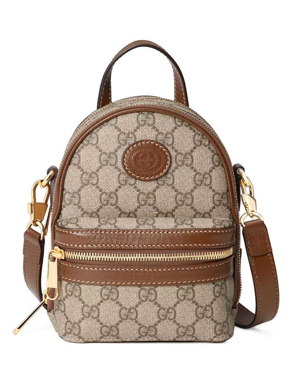 Gucci’s affinity for bringing modern, practical touches to classic designs is captured in the soft lines of this black leather backpack. Functional pockets complete the design, while a tonal iteration of the house’s Double G lends an understated feel.