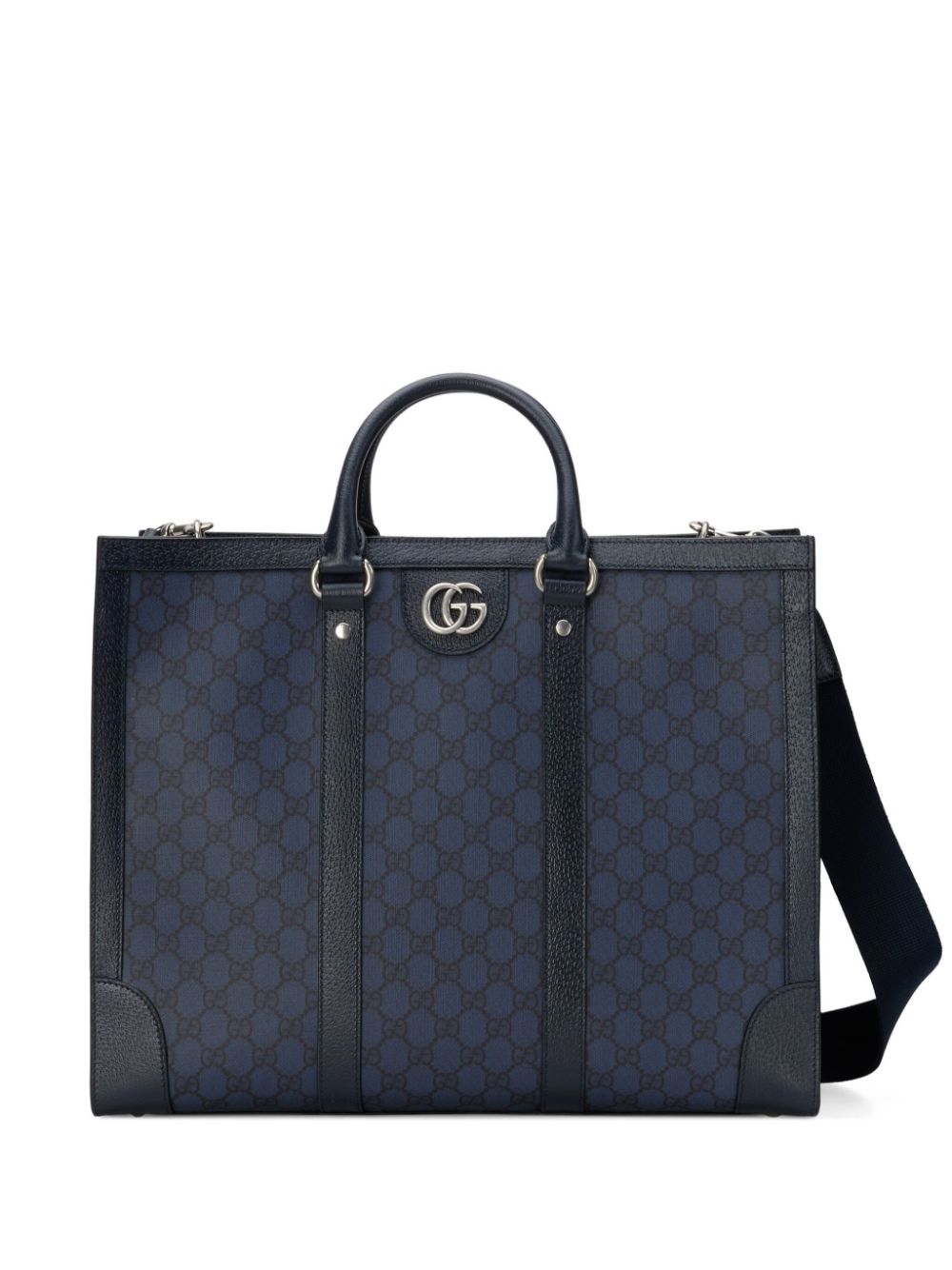 - GG monogram-embossed clutch bag from GUCCI featuring ash grey, calf leather, signature Double G logo, embossed monogram pattern, top zip fastening, main compartment, internal logo stamp and internal zip-fastening pocket.