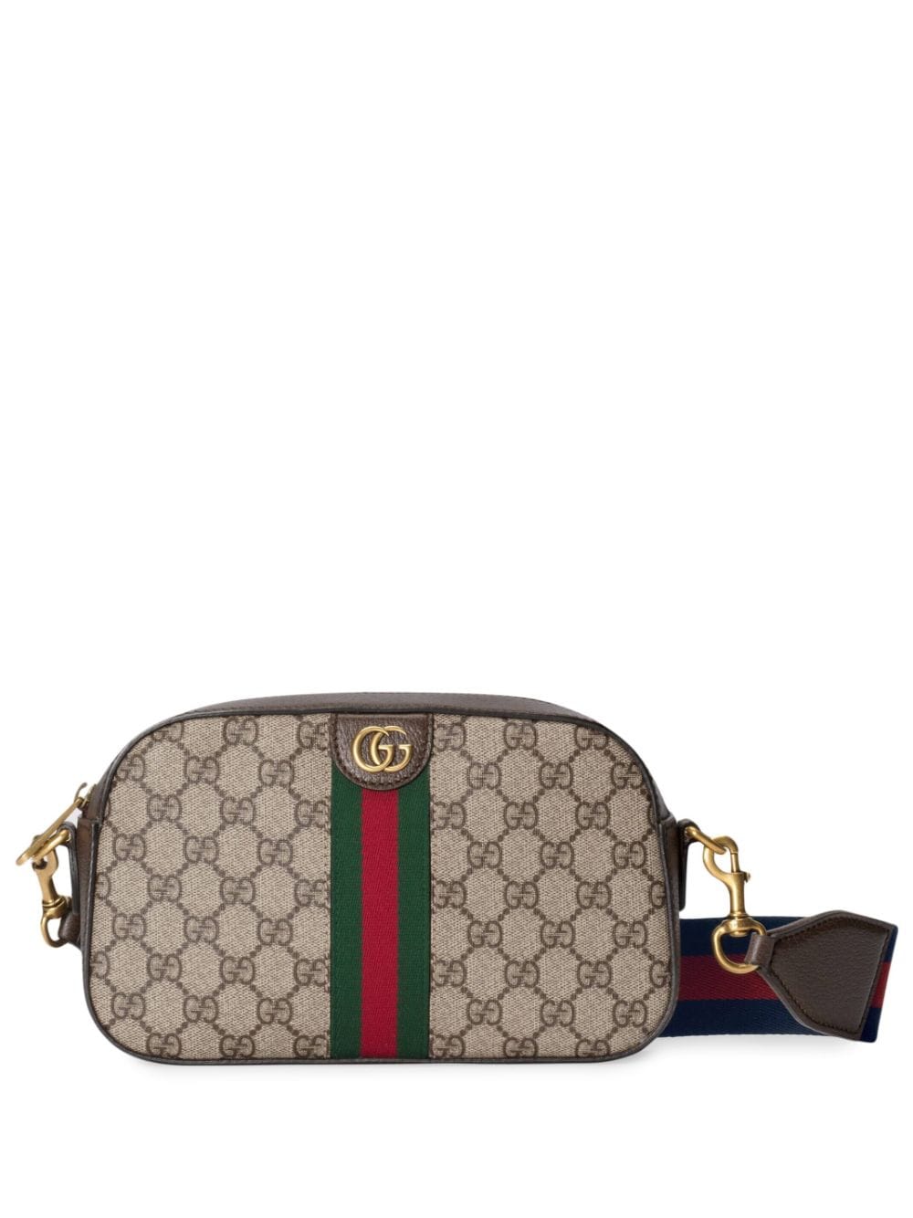 - medium Jumbo GG messenger bag from Gucci featuring black, intarsia-knit logo, top zip fastening, detachable shoulder strap, wrist strap, main compartment and internal zip-fastening pocket.