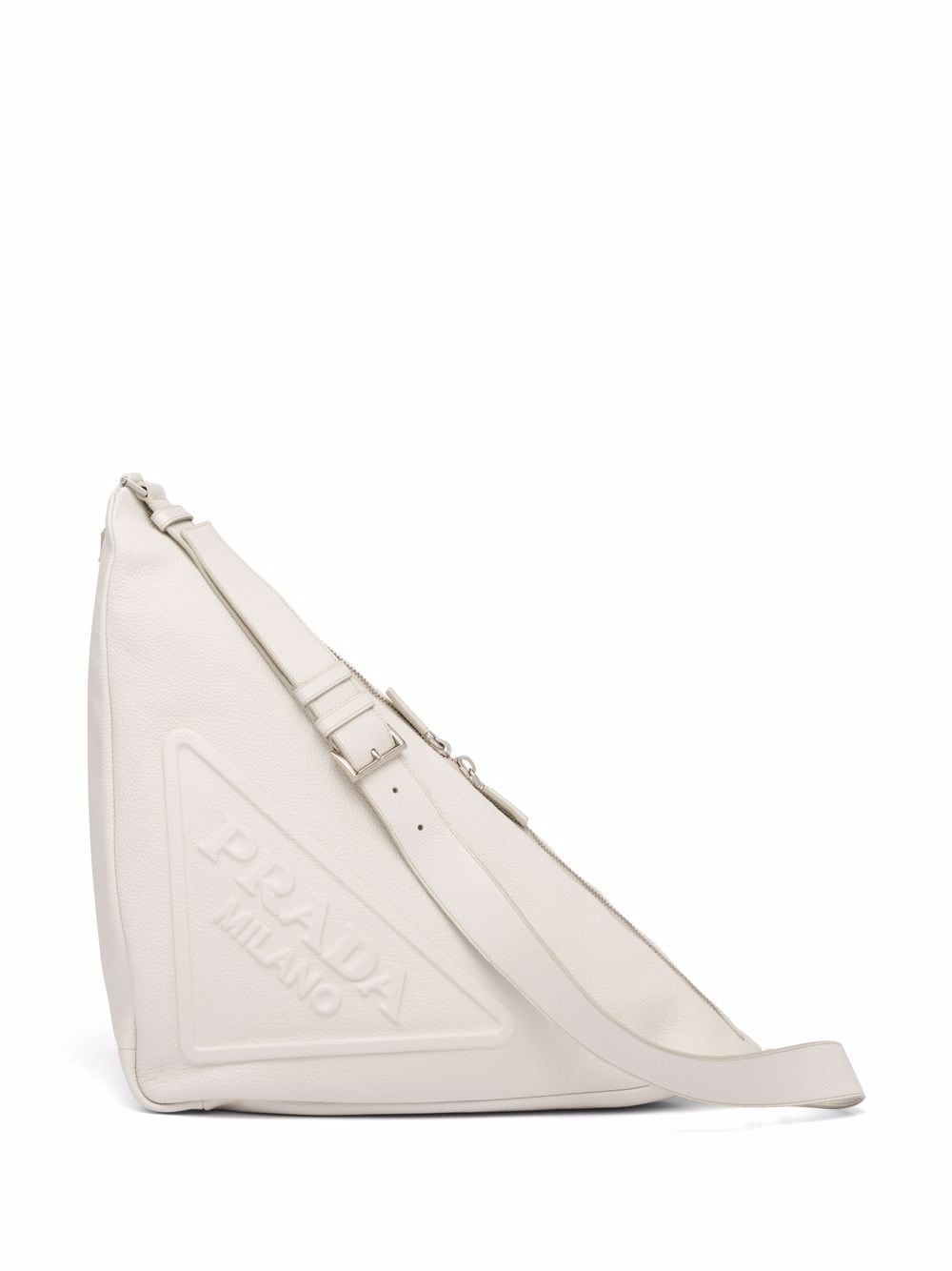 - leather logo-patch travel bag from PRADA featuring Saffiano leather, logo patch to the front, detachable shoulder strap, two rounded handles to the sides, top zip fastening, internal zip-fastening pocket and bright blue.