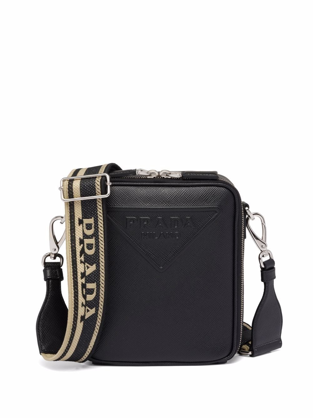 Pra*a triangle-logo saffiano leather briefcase