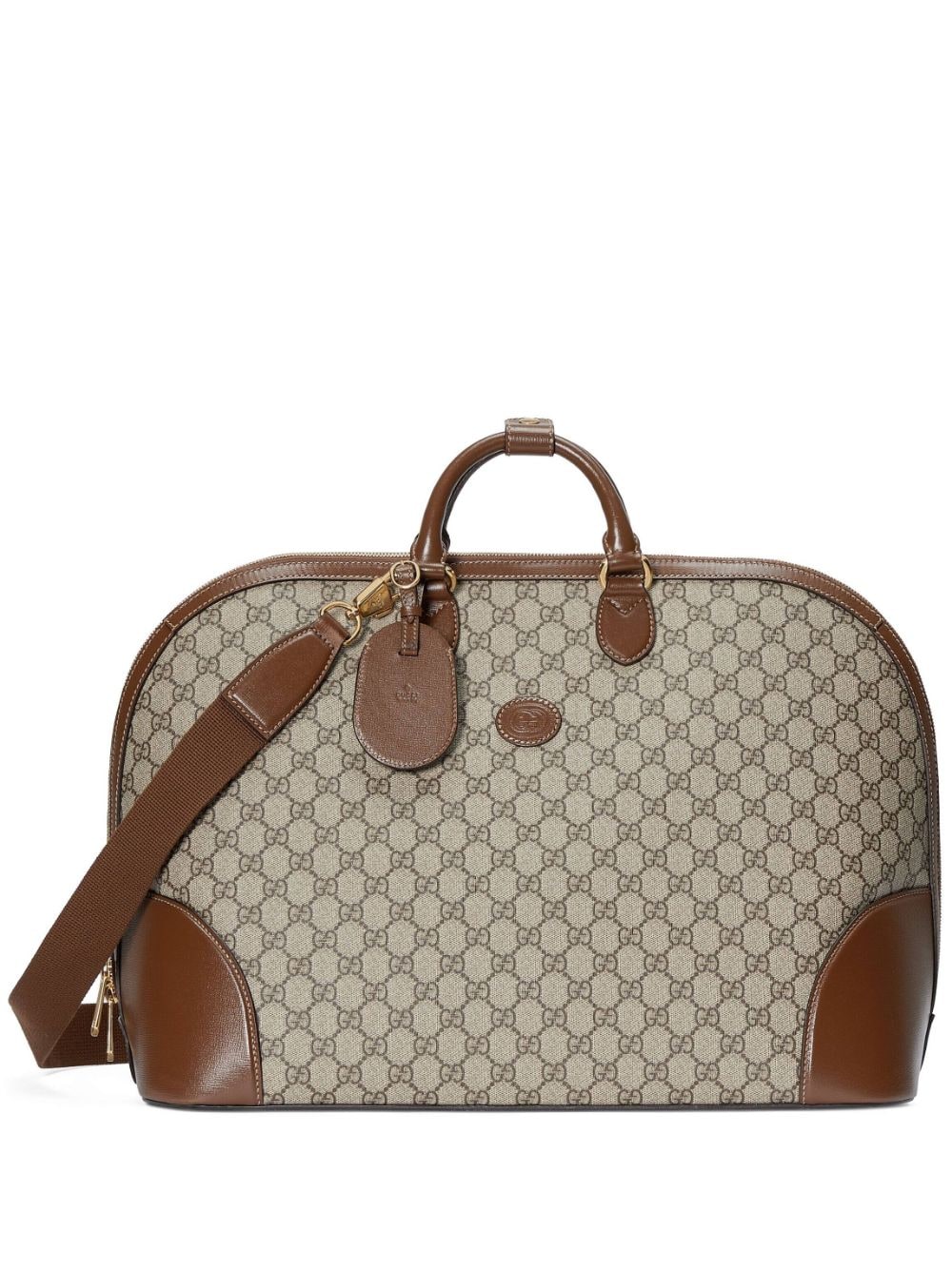 - Why overstuff your trousers’ pockets when you could simply carry everything in a bag like this? Crafted from beige and brown canvas, this Ophidia shoulder bag from Gucci is detailed with the brands signature green and red Web stripe and a gold-tone metal Double G logo plaque that everyone recognises. Featuring an all-over GG Supreme pattern, antique effect gold-tone hardware, an adjustable shoulder strap, a top zip fastening, a front zip pocket and a main internal compartment.