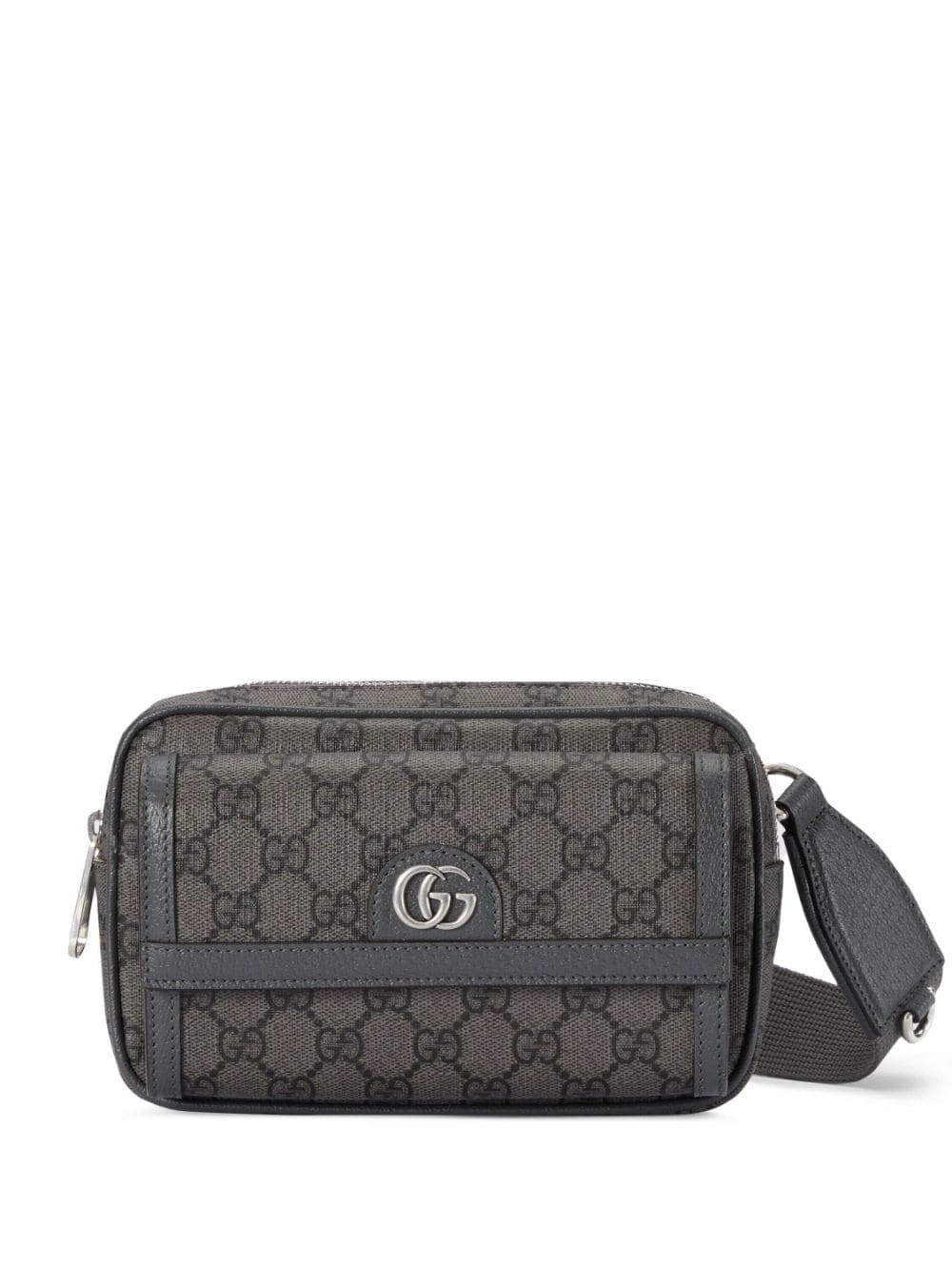 First used in the 1970s, the GG logo was an evolution of the original Gucci rhombi design from the 1930s, and from then it’s been an established symbol of Gucci’s heritage. This small messenger bag combines the signature motif with the Web stripe—a timeless pairing that pays homage to Gucci’s roots. Black/grey GG Supreme canvas, a material with low environmental impact. Blue and red Web strap. Palladium-toned hardware. Gucci trademark leather tag detail. Front zipper pocket. Interior open pocket and two smartphone pockets. Detachable and adjustable shoulder strap with 20.5″ drop. Small size: W8.5″ x H9″x D2″. Cotton linen lining. Made in Italy.