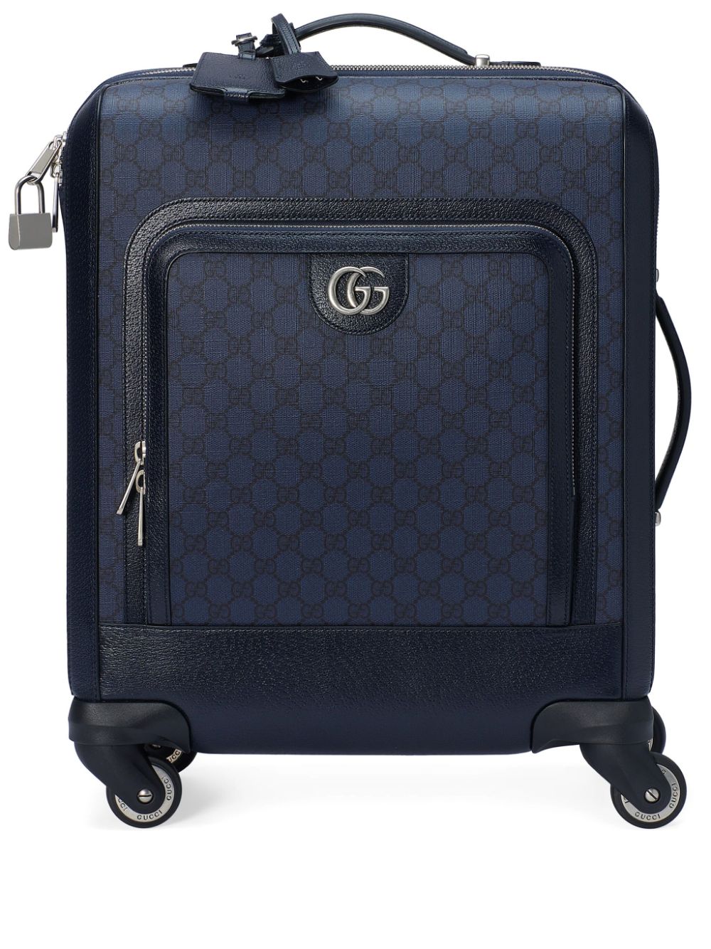 - Debuting in the ’60s, the GG Supreme canvas defines the construction of this carry-on from Gucci’s SS22 collection named ‘Love Parade’. A timeless mix of blue and beige reinvents the canvas, giving a modern update to the iconic design yet continuing with the house narrative.