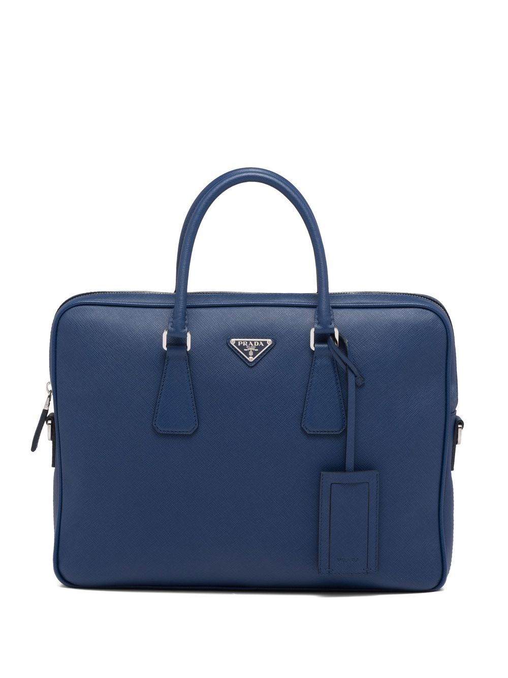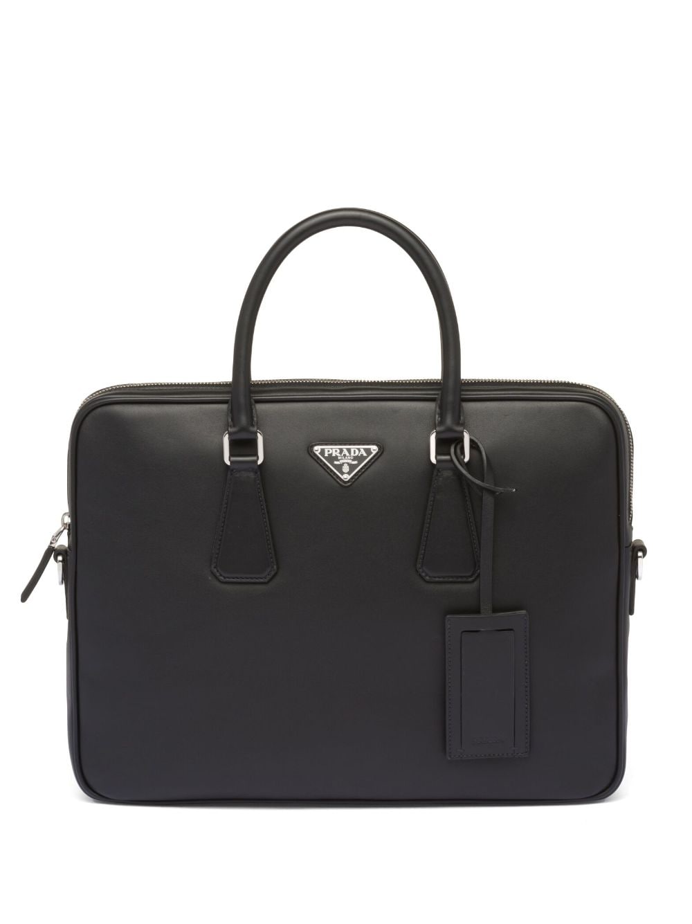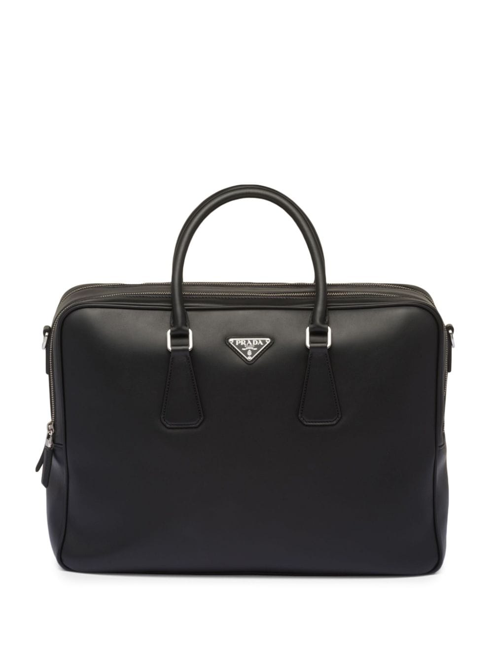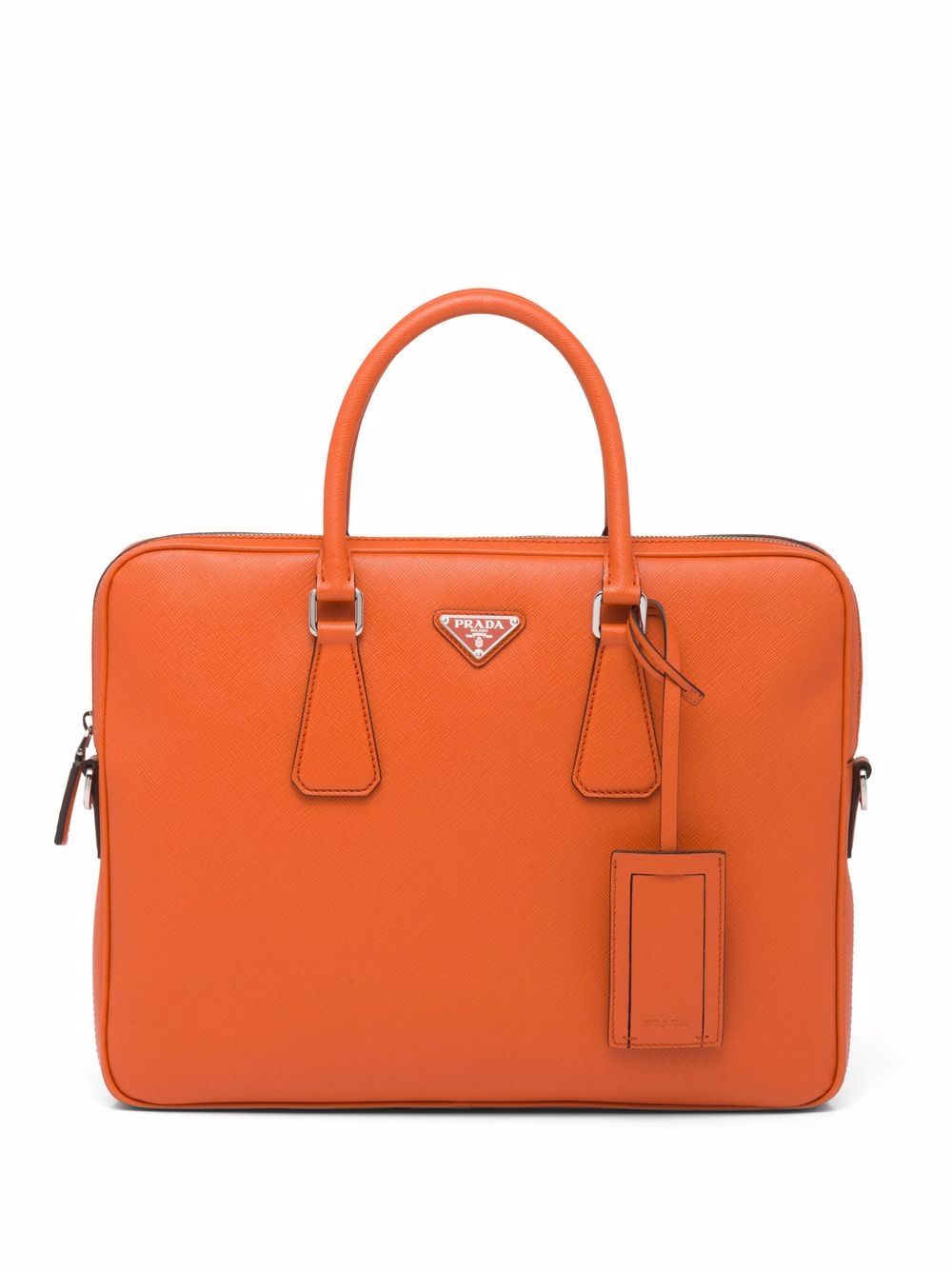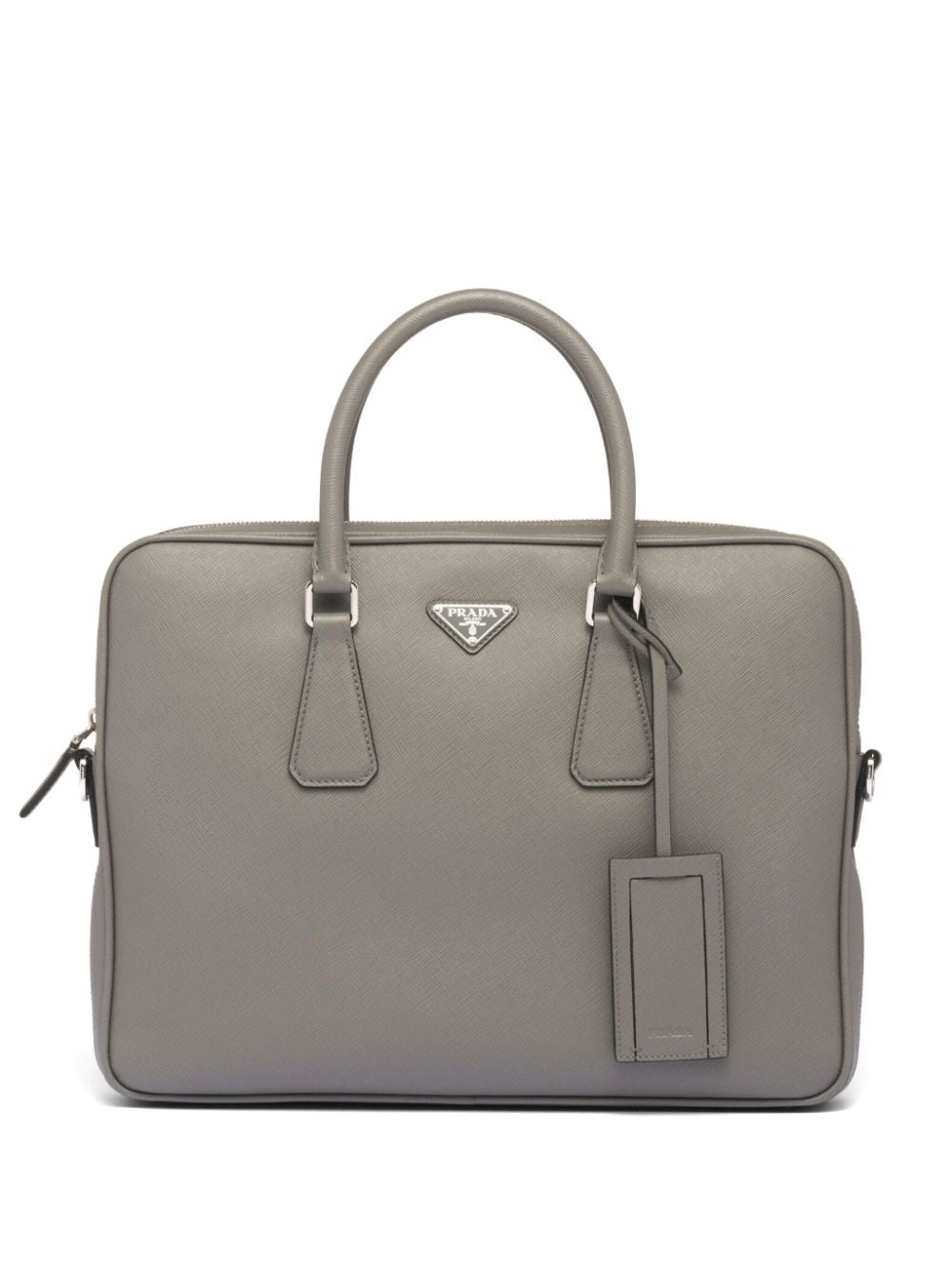 Pra*a triangle-logo saffiano leather briefcase