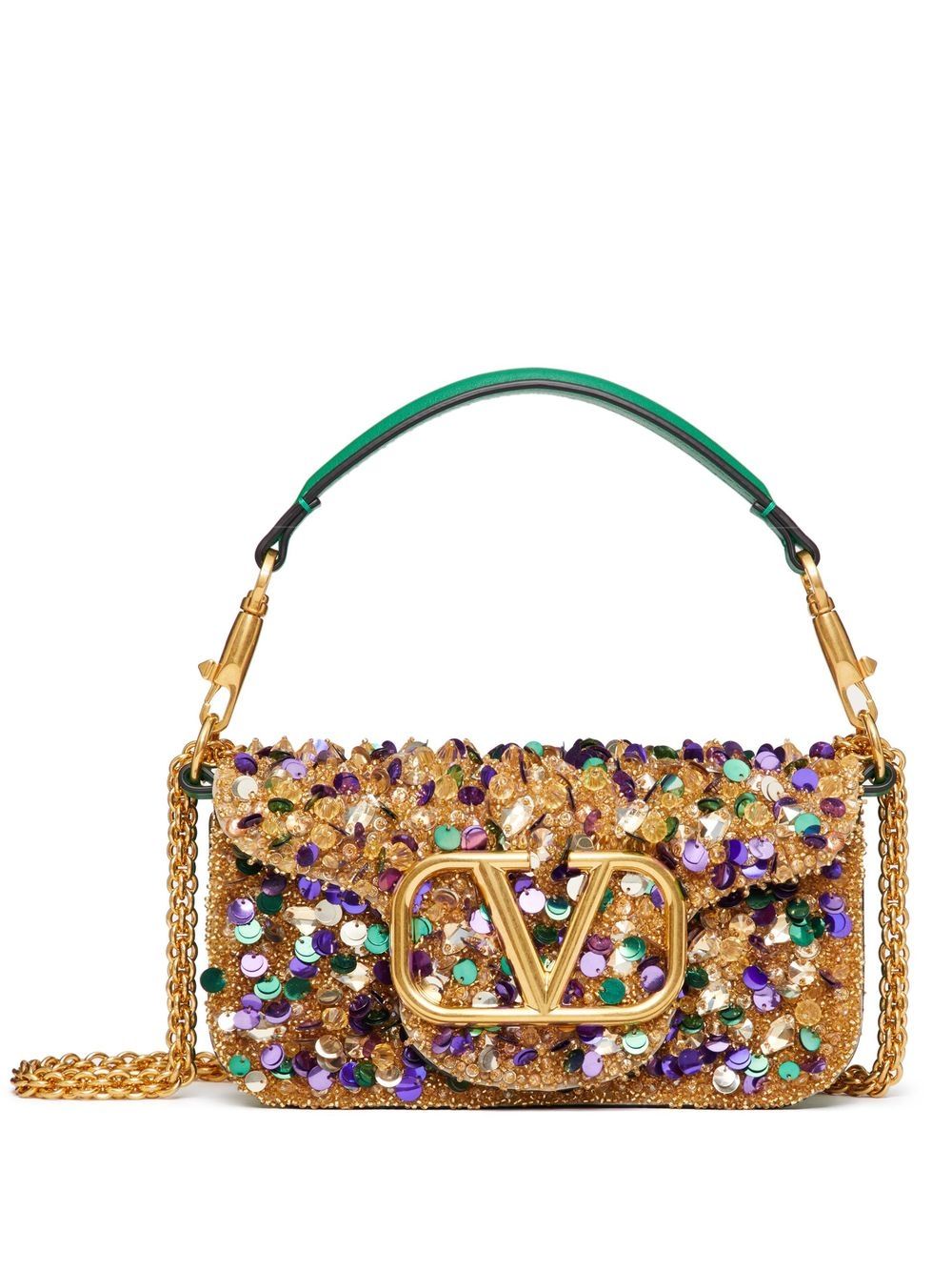 Valentino Garavani small Locò crystal-embellished metallic shoulder bag